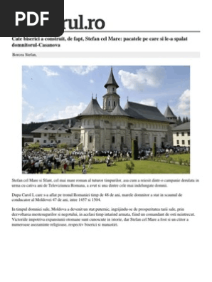 Acest sfânt locaș cu hramul sfinților mai mari voievozi mihail și gavriil din temelie ridicat întâiul de fericitului întru pomenire de ștefan voievod cel mare și apoi de duca voievod înfrumusețat iar acum în zilele de prea înălțatului domn mihail grigore sturza voievod din nou întocmit. Stefan cel mare si sfant cum este numit de catre biserica ortodoxa n a fost numai conducator de osti iscusit si diplomat ci si un mare ctitor. Br o parte din ctitoriile stramosesti le am prezentat in acest material. 2 iulie 1504 suceava supranumit ștefan cel mare sau după canonizarea sa de către biserica ortodoxă română ștefan cel mare și sfânt a fost domnul moldovei între anii 1457 și 1504 a fost fiul lui bogdan al ii lea domnind timp de 47 de ani cea mai lungă domnie din epoca medievală din țările române.