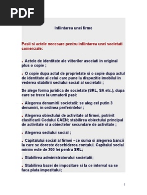 Infiintarea unei firme si capitalul social 13 aprilie 2018.
