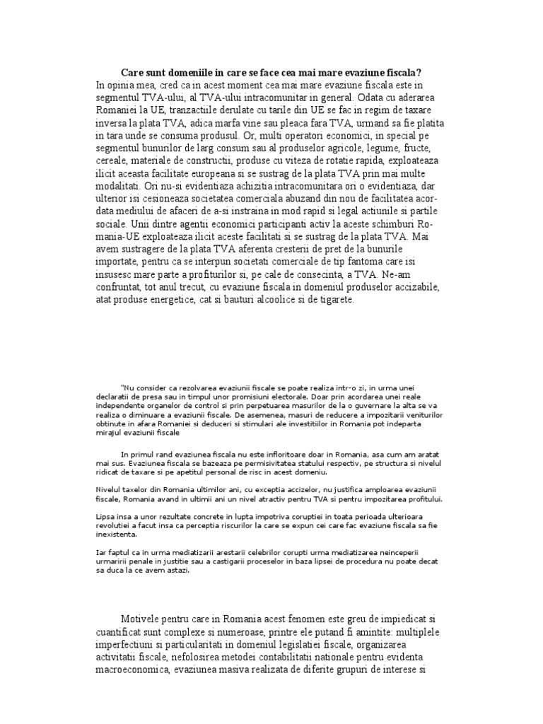 In literatura de specialitate evaziunea este definitiva ca fiind expresia sustragerii de la impunere a unei parti din materia impozabila.