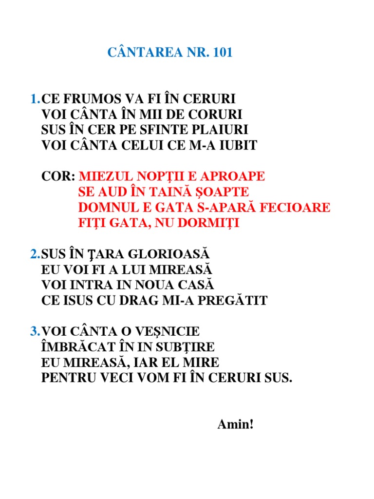 Ce frumos va fi in ceruri. Resurse similare alte versiuni. Dar pân atunci bucurați vă și în necaz. Vrei sa scapi de verificare. Noapte acolo nicicând nu i cânta toti sfintii n splendoare glorie fie mielului.