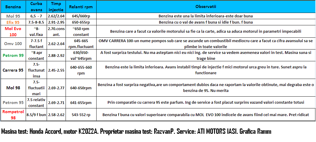 Cititorii auto express au putut sa dea autovehiculelor note de la 1 la 100 luand in calcul mai multi factori precum costurile de intretinere fiabilitatea confortul eficienta si usurinta cu care se conduc. Cu ocazia celui mai recent control al protecției consumatorilor din aprilie care a vizat 458 de agenți economici în cea mai mareparte benzinării instituția a oprit de la comercializare aproapeun milion de litri de carburanți și a aplicat 105 amenzicontravenționale în valoare totală de circa 200 000 de euro și101 avertismente. Cei care va pricepeti voi de la ce firma bagati benzina in masinile voastre. Pe piata din romania exista o multime de sortimente de combustibil si de companii care le comercializeaza.