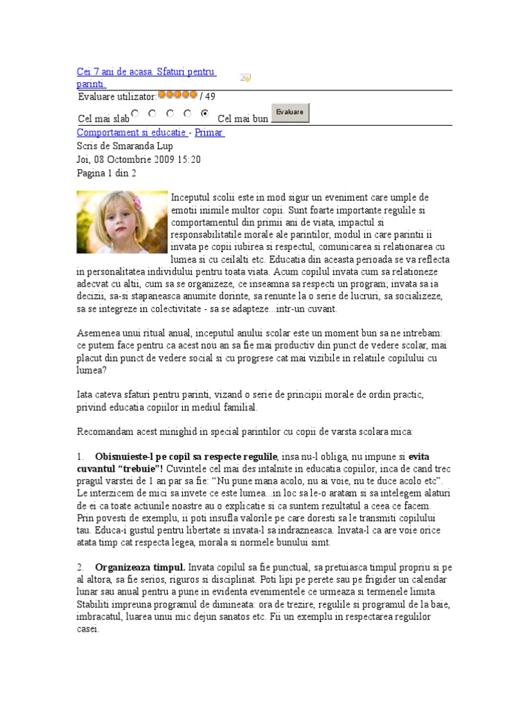 3 au spus mulţumesc. Normele de conduita se invata din familie. Cei 7 ani de acasa referat. Scoala si alte medii educationale nu pot ulterior decat sa confirme si sa consolideze normele deja deprinse din familie.