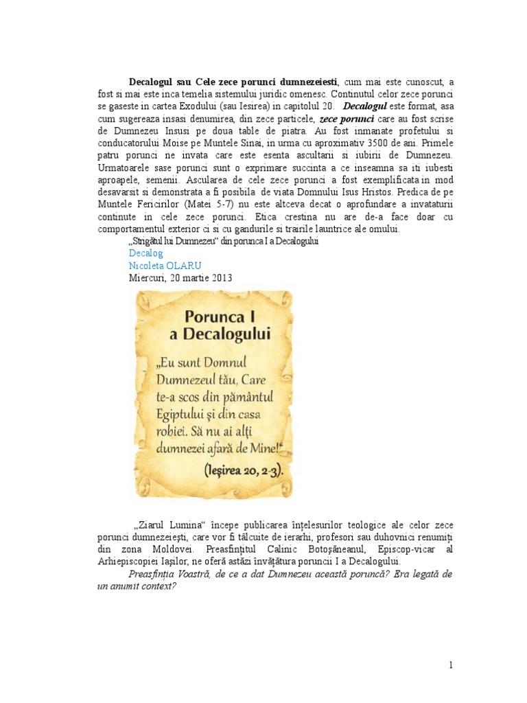 Ci fiecare dintre noi o călcăm când dăm altui lucru sau. Să nu ai alţi dumnezei afară de mine prin această primă poruncă dumnezeu cere omului să i se închine lui singur. Eu sunt domnul dumnezeul tau. Nu numai cei care se închină la soare la lună şi la stele calcă această poruncă.