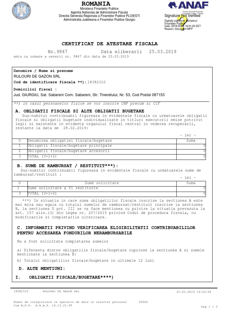 Certificat De Atestare Fiscala Ce Este Si De Unde Il Obtii Ciel Romania