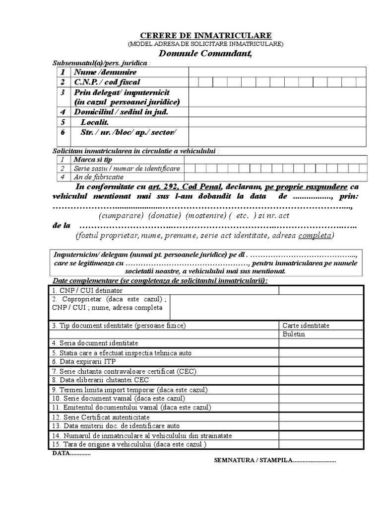 Cerere De Inmatriculare Auto 2020 Pdf