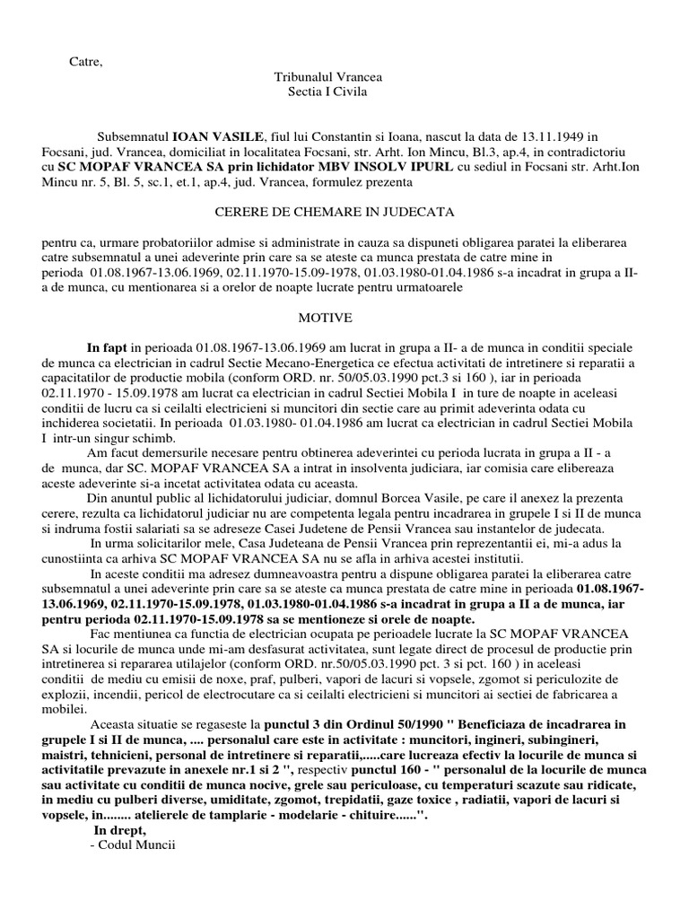 Cerere grupa a 2 de munca. 11 860 1969 fără a se condiţiona de existenţa buletinelor de determinare a. Casa națională de pensii publice cnpp explică procedura pe care trebuie să o urmați ca să dovediți perioadele de vechime în grupa i sau a ii a de muncă realizate anterior datei de 1 aprilie 2001 în cazul în care acestea nu sunt înregistrate în carnetul de muncă ori au fost înregistrate incorect sau incomplet. Pentru perioada anterioară datei de 18 martie 1969 încadrarea în grupa i sau ii de muncă s a făcut cu respectarea instrucţiunilor ministerului muncii nr. Eu cred ca la stabilirea pensiei s a avut in vedere faptul ca a lucrat in grupa a iia de munca parcurgeti cu atentie decizia de pensionare daca nu pe baza actelor care atesta faptul ca a prestat munca in conditii de grupa a iia de munca depuneti o cerere de recalculare a pensiei in baza art 107 din legea 263 din 2010 la vremea la care s a pensionmat era in vigoare legea 3 din 1977.